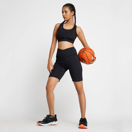 Power Your Performance: Black Shorts + Black Sports Bra Combo