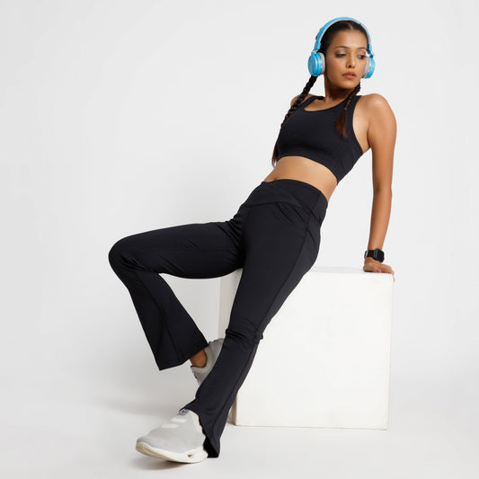 Riyu Black Flare Pant + Black Tank Top Combo – Sleek, Timeless & Effortlessly Chic